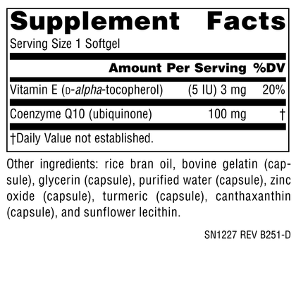 Formulated with 100 mg of Coenzyme Q10, plus vitamin E for additional antioxidant, brain, and circulatory system support*