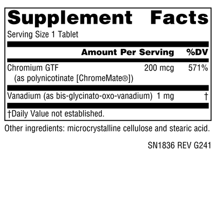 Chromium GTF (as polynicotinate [ChromeMate®]), Vanadium (as bis-glycinato-oxo-vanadium)